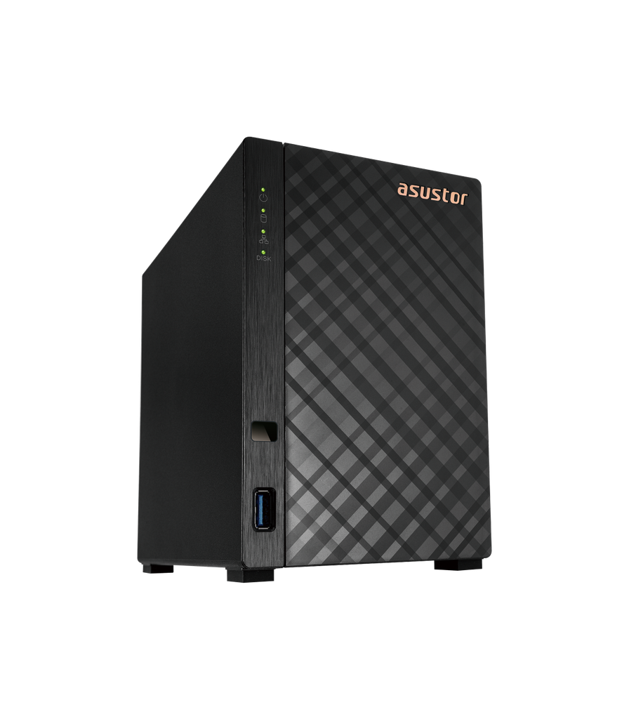 | 2-bay Tower (up to 10 bay), Quad-Core 1.7 GHz, 1GB RAM - CPU: CPU: Realtek RTD1619B Quad-Core 1.7 GHz CPU - Memory: 1GB DDR4 (not expandable) - Flash memory: 8GB eMMC - Storage: 2 x 3.5"/2.5" SATA HDD or 2.5" SATA SSD - Max Internal Capacity: 36TB (18TB HDD X 2, Capacity may vary by RAID types) - Maximum Capacity with Expansion Units: 180TB (18TB HDD X 10, Capacity may vary by RAID types) - External Ports: USB 3.2 Gen1 (5.0Gb/s) - LAN: 2.5 Gigabit Ethernet (2.5G/1G/100M) x 1 - Maximum IP cam: 12 (4 free license included) - Power Supply Unit / Adapter: Single 65W - Expansion unit: AS5004U - Toolless installation |