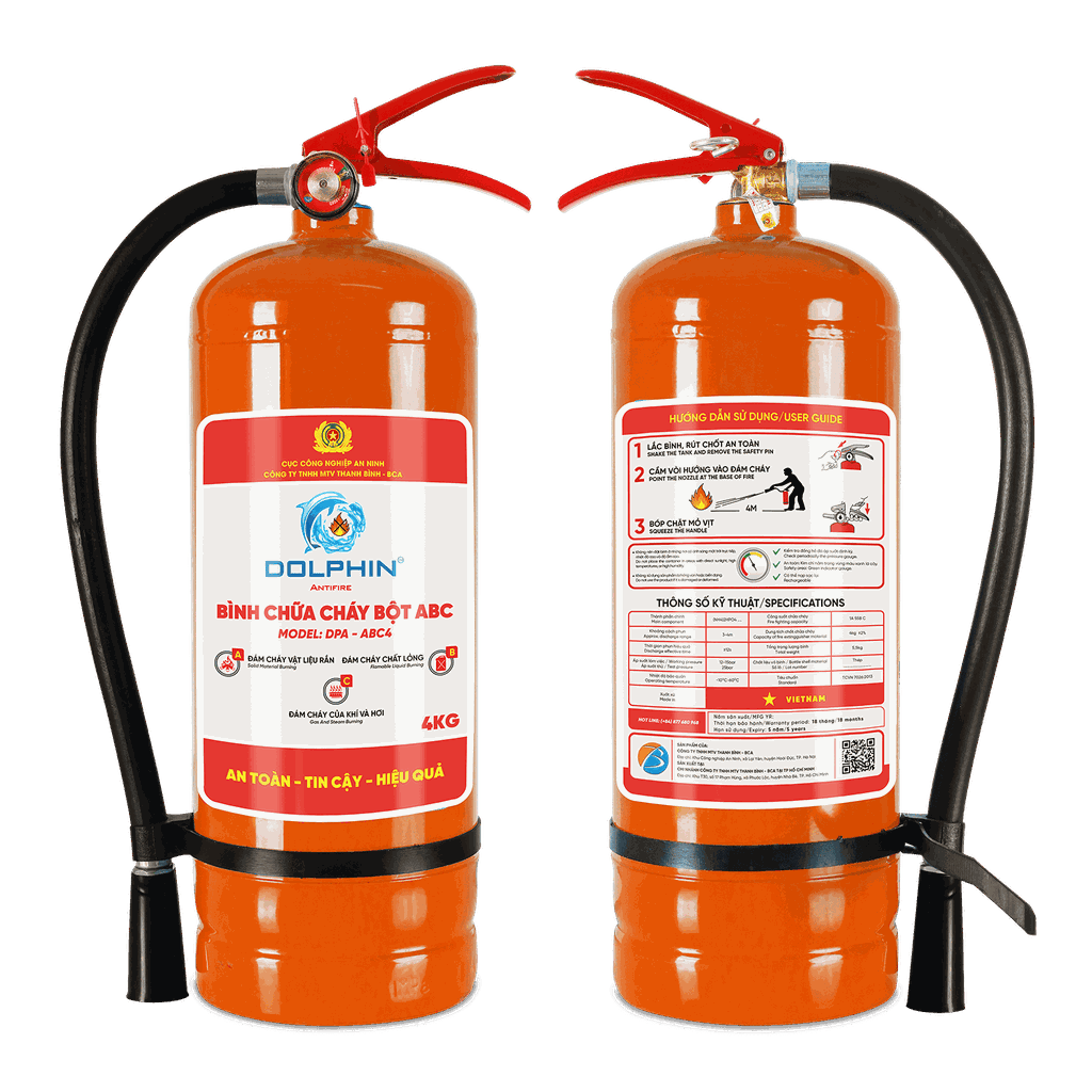 Bình chữa cháy Dolphin là thương hiệu thiết bị PCCC uy tín, được tin dùng nhờ chất lượng vỏ bình dày dặn, van khóa an toàn và chất lượng bột chữa cháy đạt chuẩn. Dòng bình bột ABC Dolphin có khả năng dập tắt đám cháy đa năng (Rắn, Lỏng, Khí), phù hợp cho mọi công trình từ hộ gia đình, văn phòng đến nhà xưởng công nghiệp với các dung tích phổ biến: 4kg, 8kg.