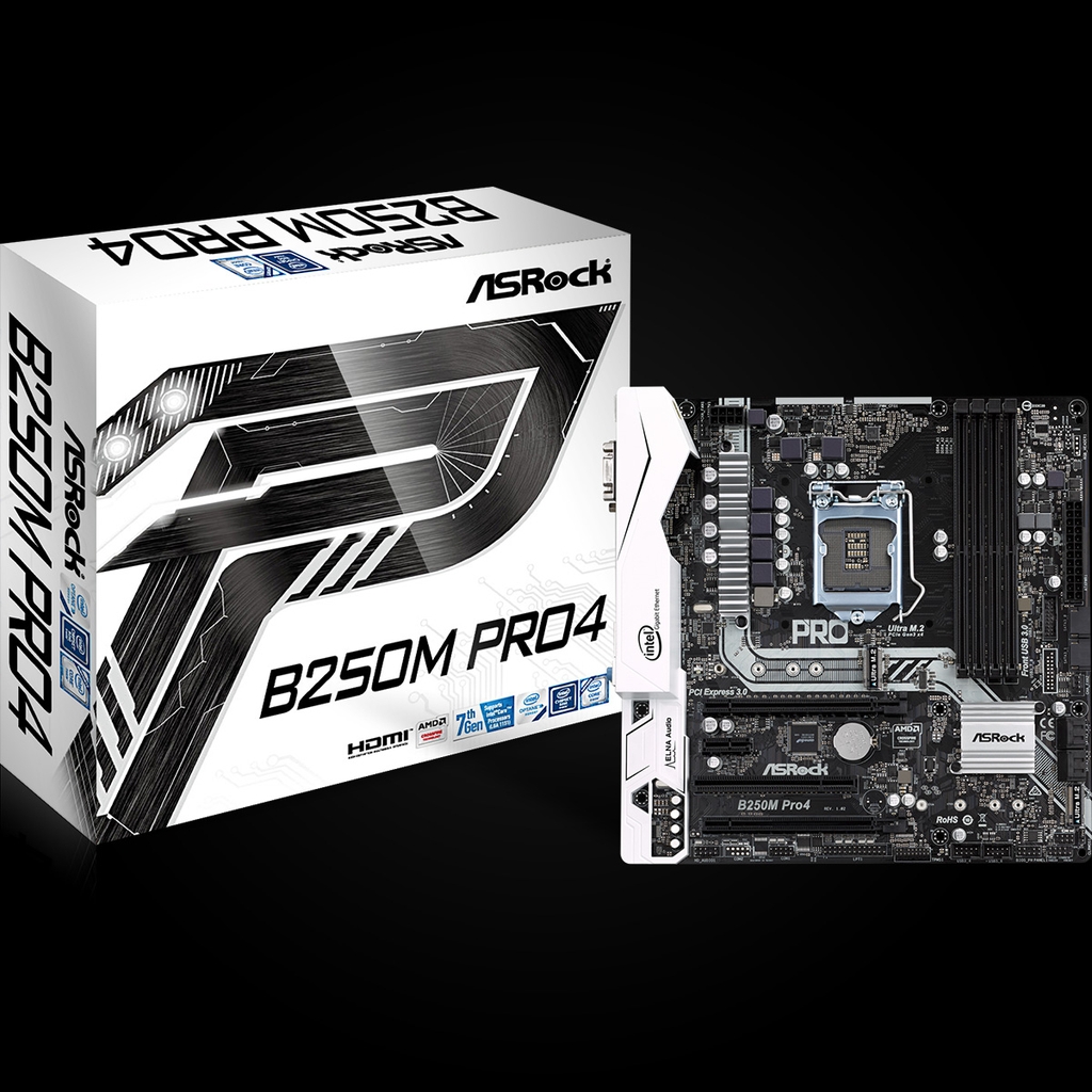 Asrock B250M Pro4/M/ASRK là bo mạch chủ chuẩn Micro-ATX sử dụng chipset Intel B250, hỗ trợ socket LGA 1151 cho các CPU Intel Core thế hệ 6 và 7. Với thiết kế bền bỉ, khả năng nâng cấp linh hoạt và nhiều tính năng tiện ích, sản phẩm phù hợp cho máy tính văn phòng, học tập và giải trí cơ bản đến nâng cao.