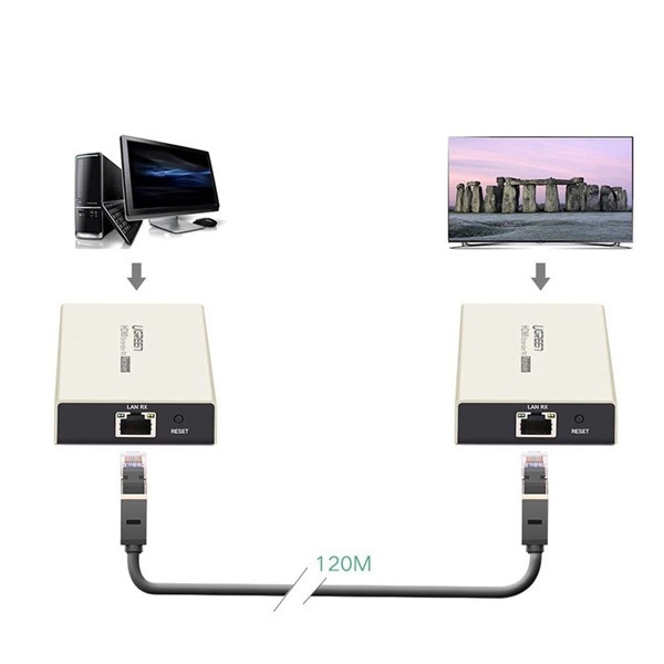 Ugreen 30945 đóng vai trò là thiết bị nhận (Receiver - RX), kết hợp cùng thiết bị phát (Transmitter - TX, mã Ugreen 30944) tạo thành một hệ thống chuyển đổi tín hiệu HDMI qua cáp mạng Cat5e/Cat6 với khoảng cách lên đến 120 mét mà không hề bị suy hao hay giật lag.