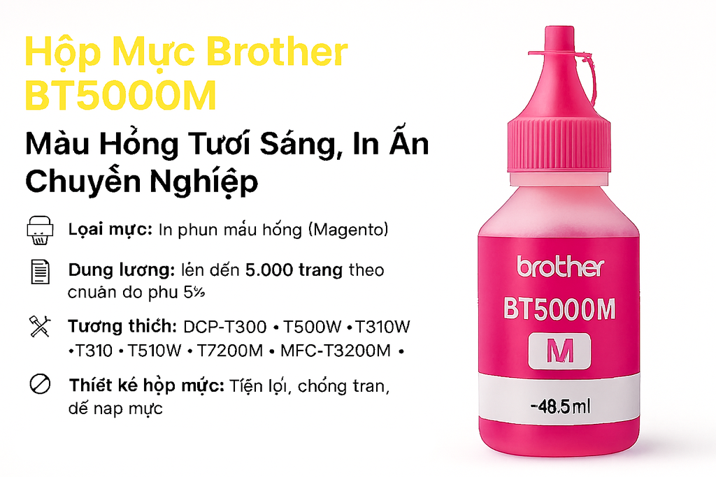 🎨 Mực in Brother BT5000M – Màu Hồng Tươi Sáng, In Ấn Chuyên Nghiệp