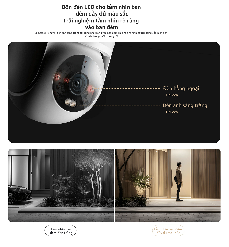 • Hỗ trợ 2 đèn hồng ngoại và 2 đèn ánh sáng trắng cho tầm nhìn ban đêm rõ ràng