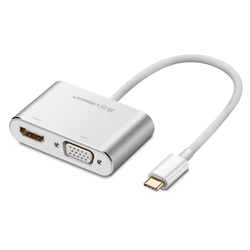 Cáp chuyển USB Type C To HDMI và VGA Ugreen 50317 vỏ nhôm tích hợp hai kết nối bao gồm cổng HDMI và VGA giúp các bạn có thể xuất hình ảnh ra 1 trong 2 cổng kết nối với màn hình tương ứng, cực kỳ thuận tiện cho các bạn khi mang theo ra ngoài tham gia hội nghị văn phòng, xem phim tại phòng chiếu phim gia đình hoặc tổ chức trình chiếu sự kiện…