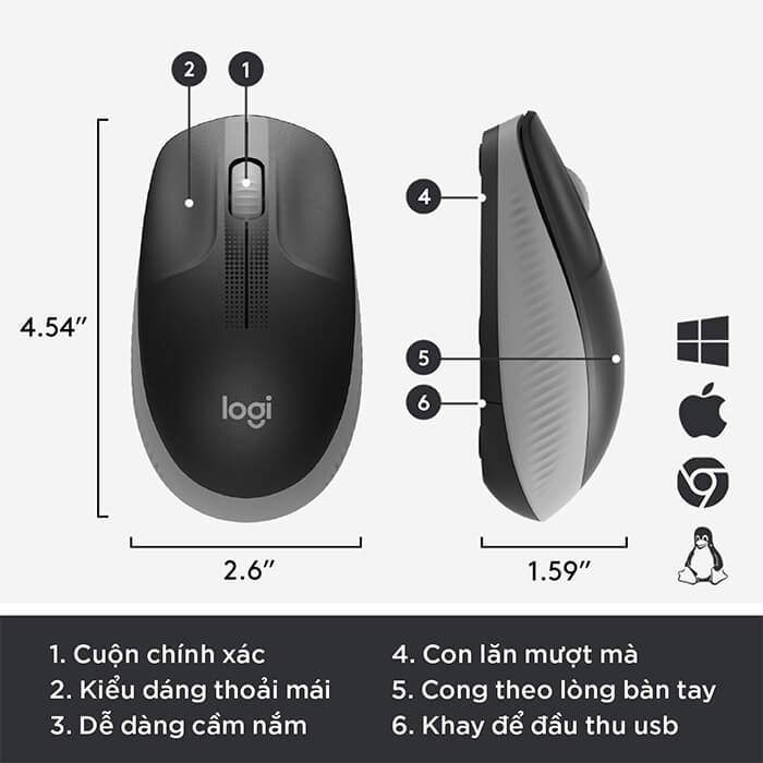 Logitech M191 là con chuột không dây có kích thước đầy đủ với thiết kế đường viền thoải mái tuân theo đường cong tự nhiên của những bàn tay từ trung bình tới lớn. Bạn sẽ làm việc không dây – từ khoảng cách lên tới 10 m.