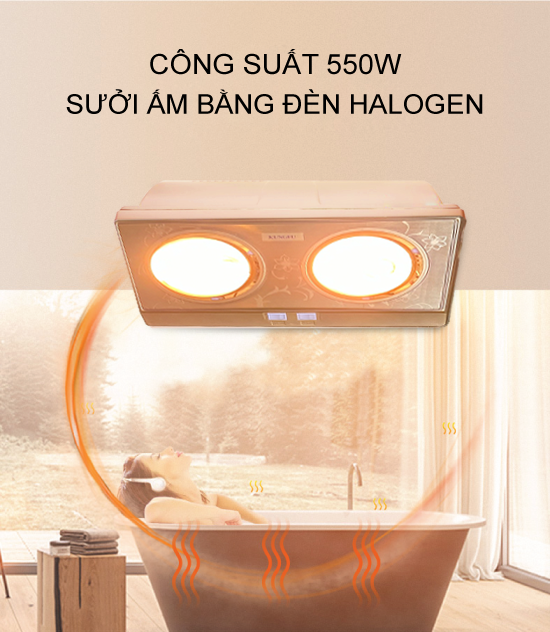 Đèn sưởi nhà tắm 2 bóng Kungfu KF-DS2 | Hàng chính hãng