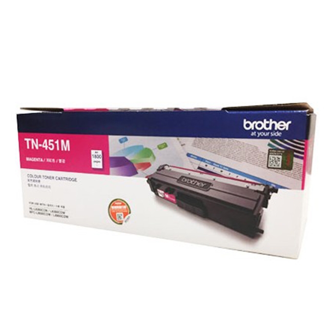 TN-451M là mã sản phẩm của hộp mực laser màu Đỏ/Hồng (Magenta Toner Cartridge) dung lượng tiêu chuẩn chính hãng Brother.