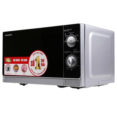 Sharp R-203VN-M có kiểu dáng nhỏ gọn với gam màu bạc sang trọng, phù hợp cho nhiều không gian bếp. Vỏ ngoài làm bằng thép sơn tĩnh điện chắc chắn, cửa kính có lưới kim loại an toàn khi vận hành.