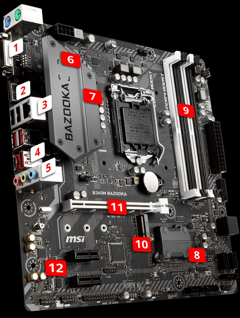 Mainboard MSI B360M BAZOOKA là một bo mạch chủ tầm trung đến từ thương hiệu MSI, sử dụng chipset Intel B360.