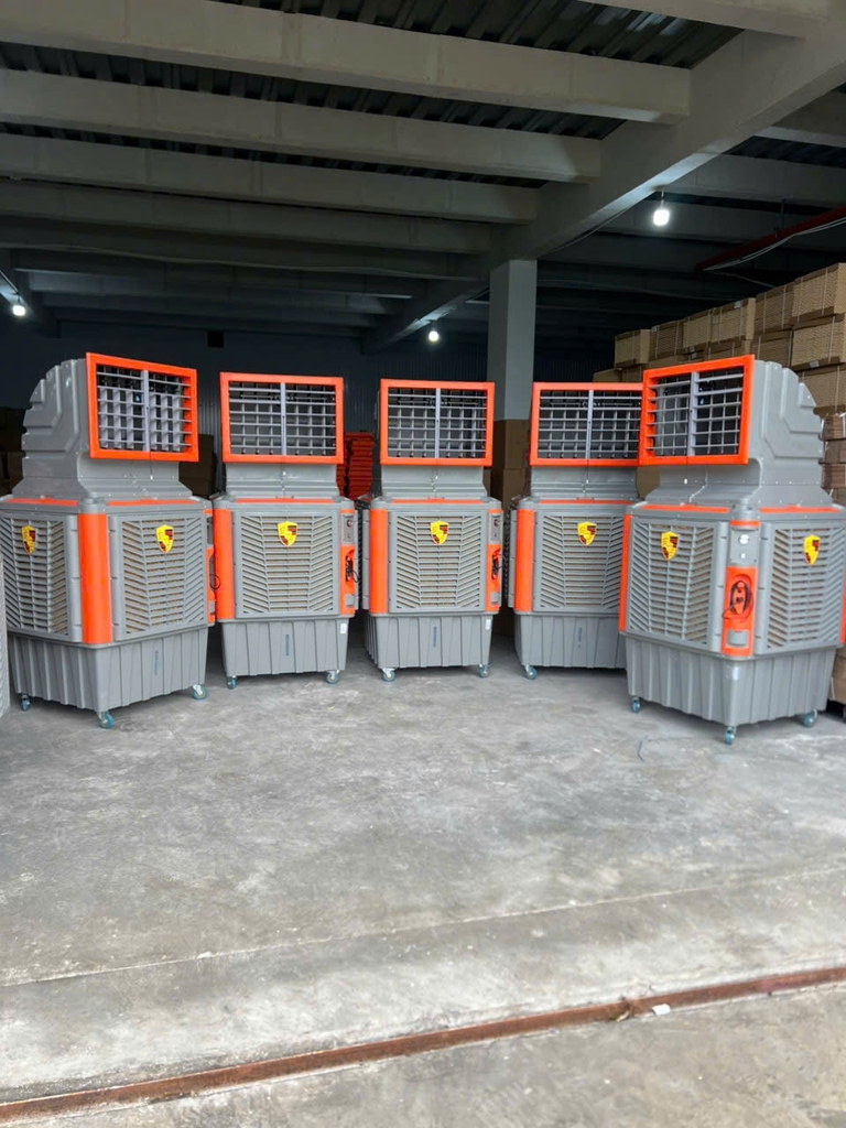 Quạt làm mát công nghiệp KF - 19 là thiết bị làm mát bằng hơi nước, được thiết kế để sử dụng cho không gian rộng lớn từ 100 - 150m². Với công suất mạnh mẽ 1.500W và lưu lượng gió 35.000 m³/h, sản phẩm này giúp giảm nhiệt hiệu quả, mang lại bầu không khí mát mẻ, thoáng đãng, phù hợp với nhiều không gian như nhà xưởng, nhà hàng, quán cà phê, hội trường hoặc các khu vực ngoài trời.