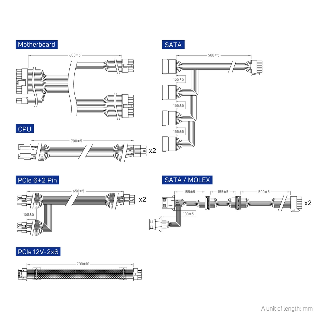 Dây CPU 4+4 pin riêng biệt và dây PCIe 6+2, 12V-2x6 linh hoạt – hỗ trợ tốt cho VGA thế hệ mới