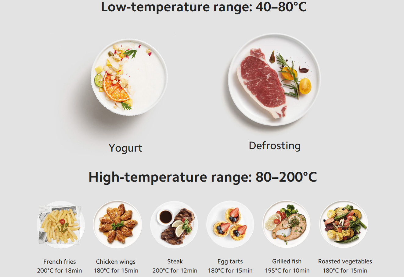 • Dải nhiệt rộng 40–220°C, hỗ trợ đa chức năng như rã đông, lên men, hâm nóng
