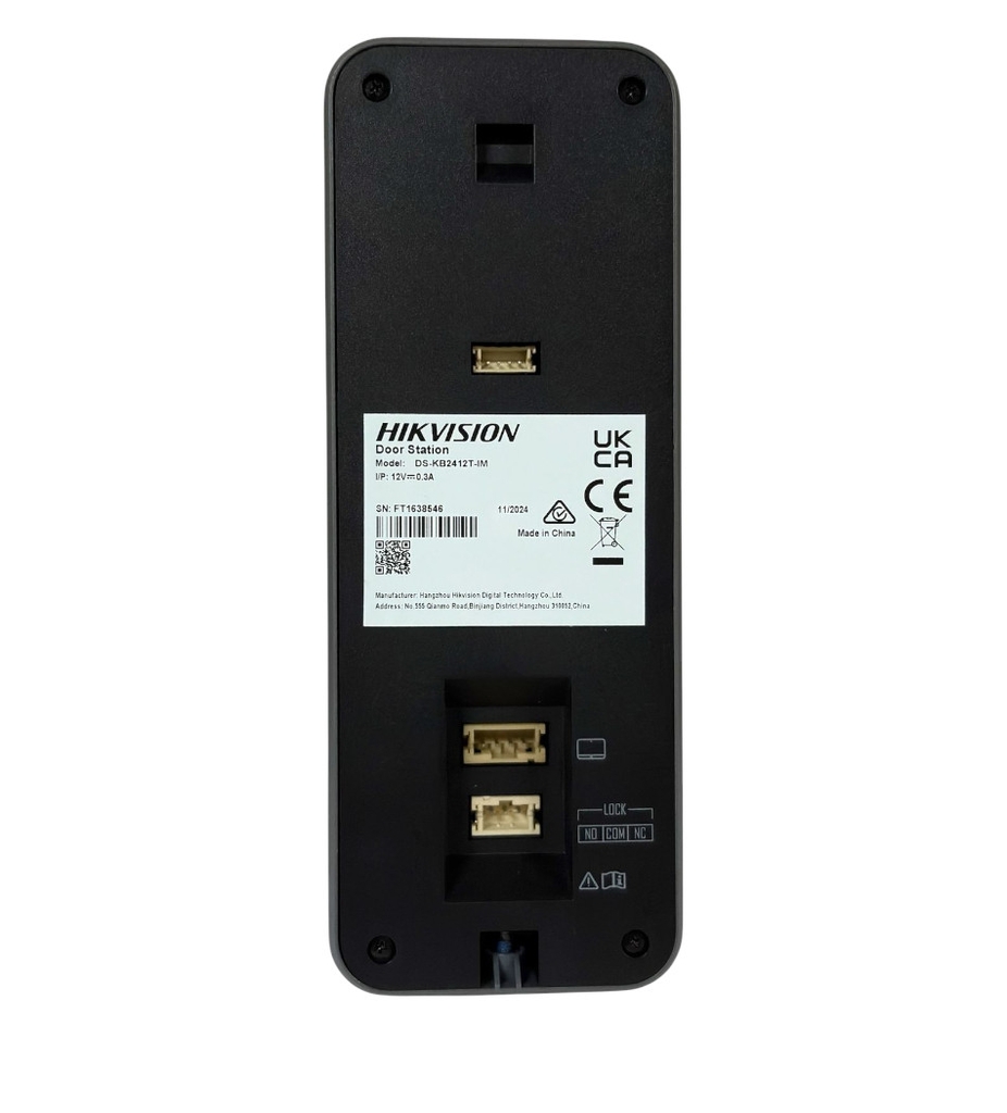 Nút chuông cửa camera Hikvision DS-KB2412T-IM là thiết bị chuông cửa có camera thuộc dòng video intercom 4 dây của Hikvision. Sản phẩm cho phép người dùng quan sát khách trước cửa, đàm thoại hai chiều và kết nối với màn hình trong nhà để mở khóa cửa từ xa.
