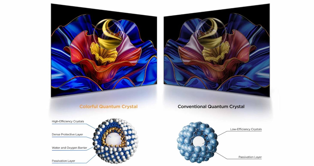 TCL QLED giới thiệu công nghệ tinh thể lượng tử nhiều màu thế hệ tiếp theo, có lớp bảo vệ nano nhiều lớp ổn định hơn và chế tác chính xác. Sự đổi mới này mang đến trải nghiệm màu sắc phi thường, lâu dài với độ sáng và chiều sâu đặc biệt.