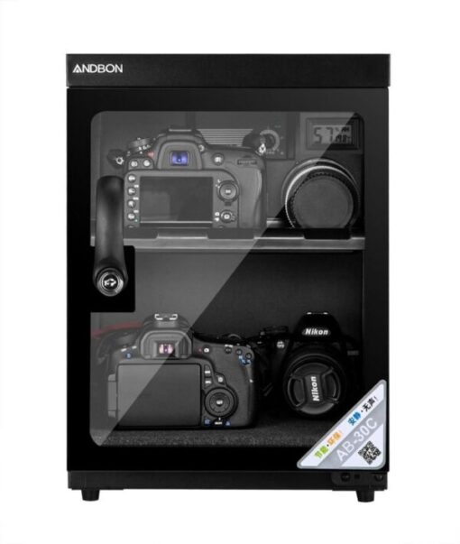 . Thiết kế tủ chống ẩm khô chuyên dụng dung tích ~30 lít, phù hợp để bảo quản máy ảnh, ống kính, phụ kiện quang học, linh kiện điện tử và tài liệu dễ ẩm mốc.