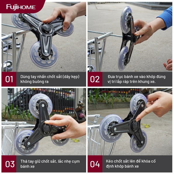 — Cấu trúc bánh xe hỗ trợ leo cầu thang và vượt địa hình gồ ghề, phù hợp chung cư, nhà có bậc thềm.